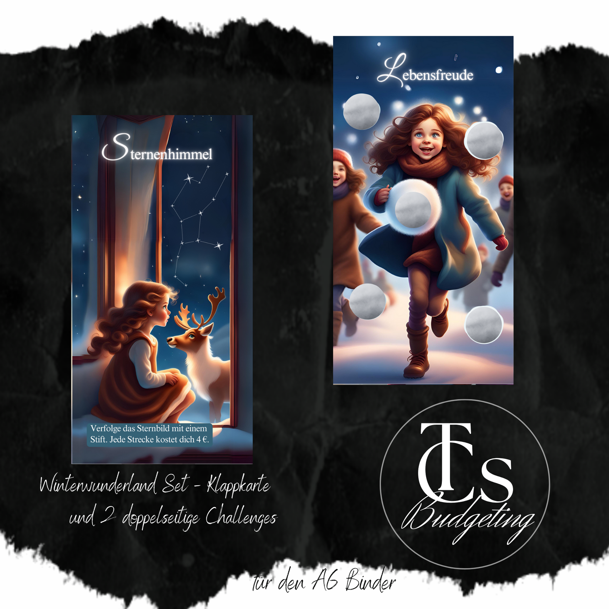 Starte mit Romina in die Winterzeit. Du erhältst eine Klappkarte und 2 doppelseitig bedruckte Challenges mit unterschiedlichen Aktionen.